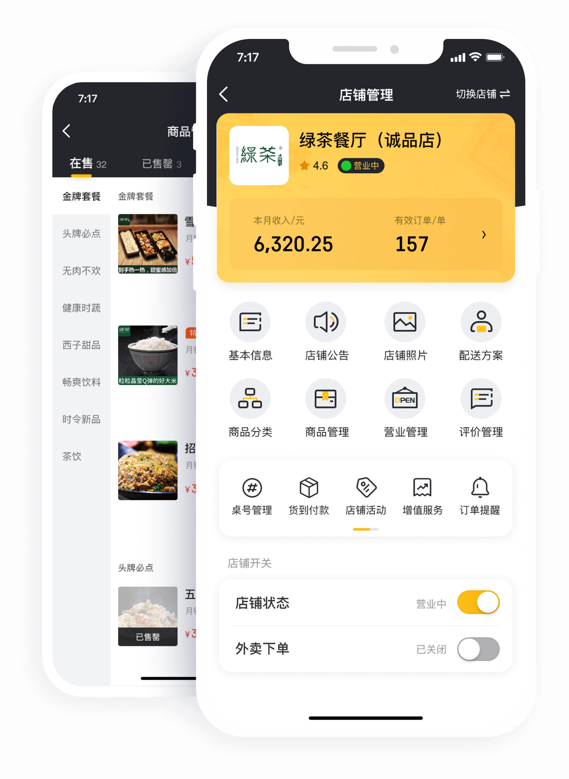 用手机在网上开餐厅,随时随地接订单。支持 iOS8 及安卓 5.0 以上系统
